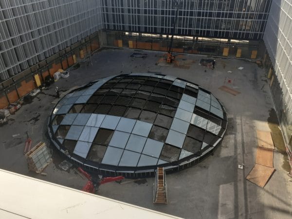 Dans le cadre de la réhabilitation du campus Rocquencourt, MTECHBUILD intervient dans la réalisation d’un dôme géodésique facetté tout en verre de plus de 20 mètres de diamètre. Ce véritable puits de lumière assurera un espace lumineux et agréable aux occupants du bâtiment.